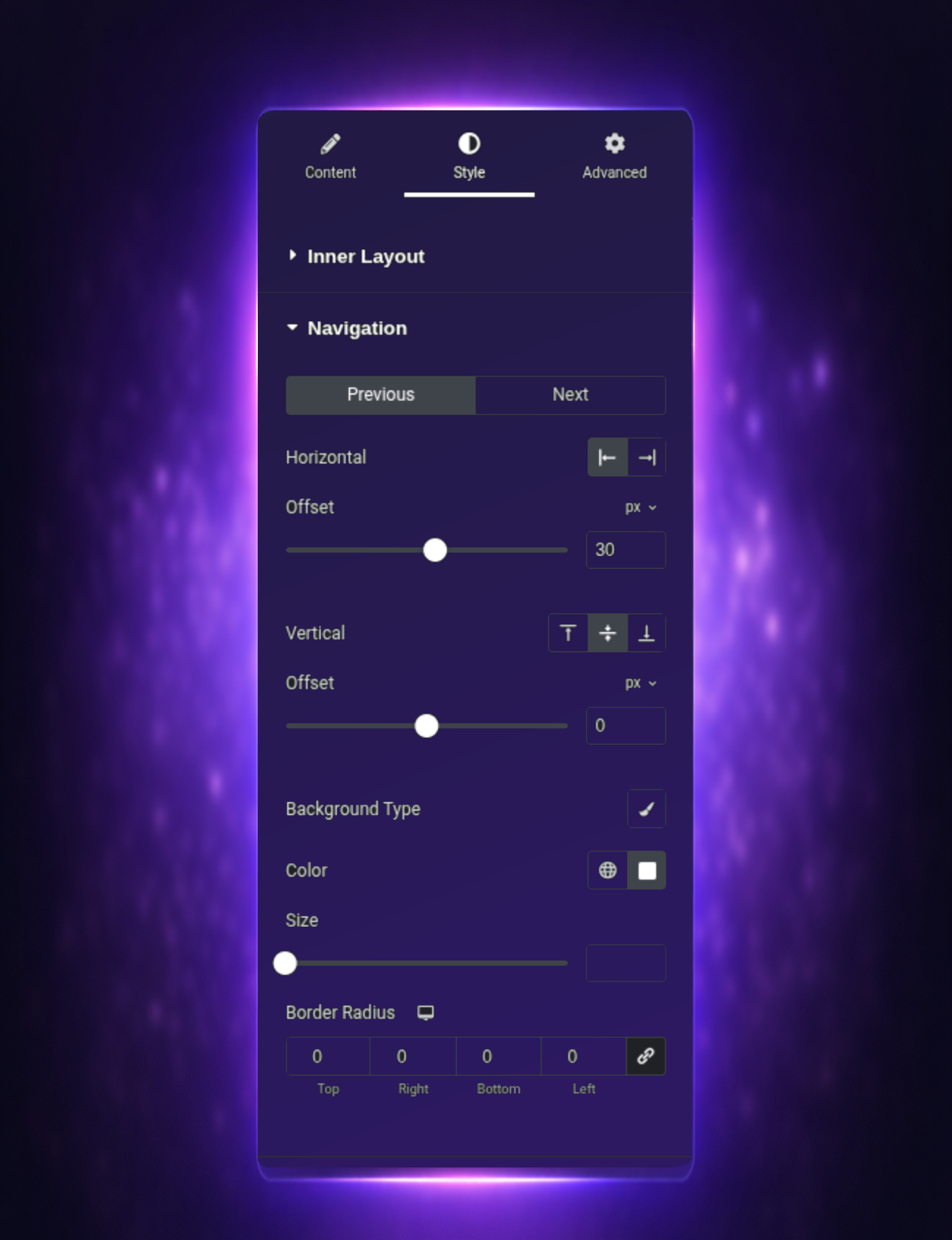 * Visual control inside Elementor