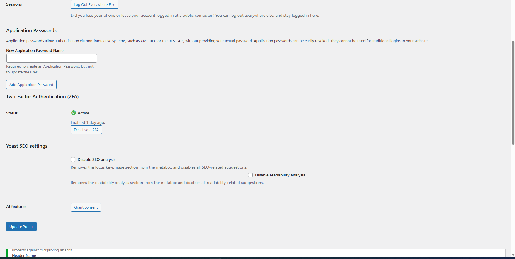 - A new “Security” menu item will appear in your admin sidebar. All settings are located there.