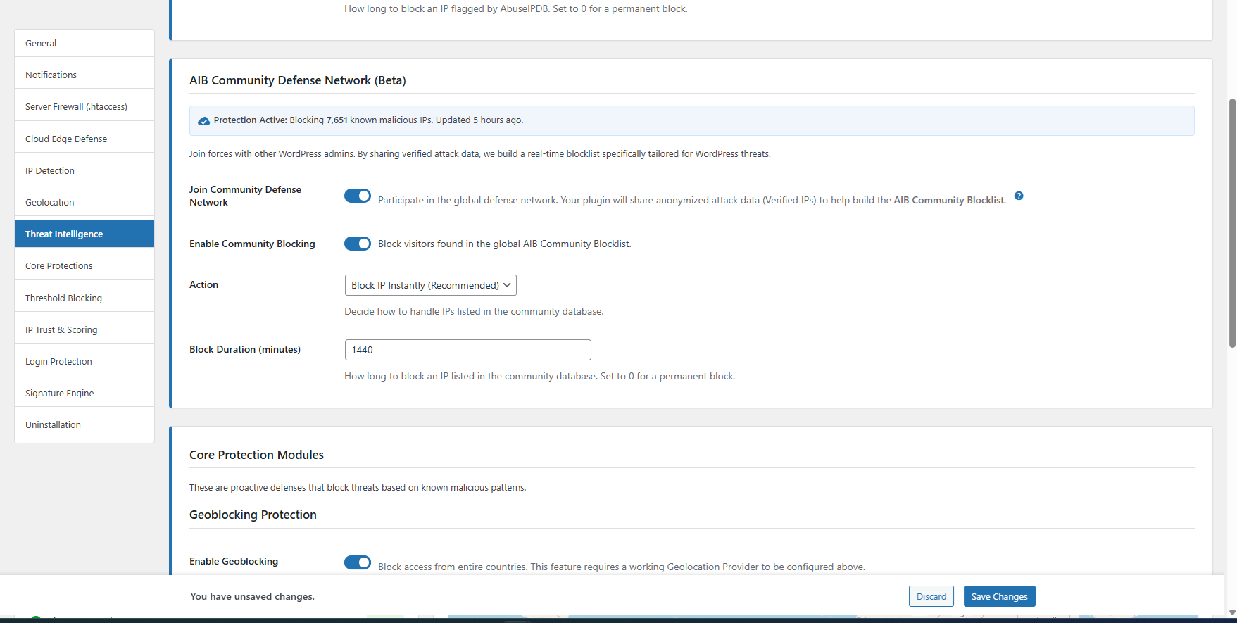 - Documentation: Added verified credits for AbuseIPDB and Wordfence Intelligence. Added context-aware help links for reCAPTCHA settings.