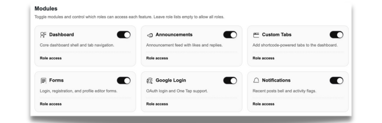 Blocdash is a modular dashboard framework for WordPress block themes. Enable only the features you need and control access by role. It includes frontend login/register/profile forms, an announcements feed with likes and replies, and optional Google OAuth login.