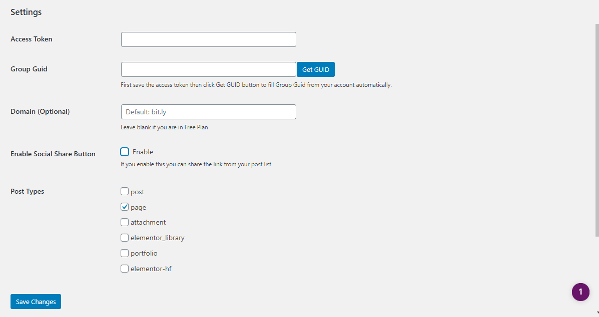 - (Optional) Select which post types should automatically generate Bitly links