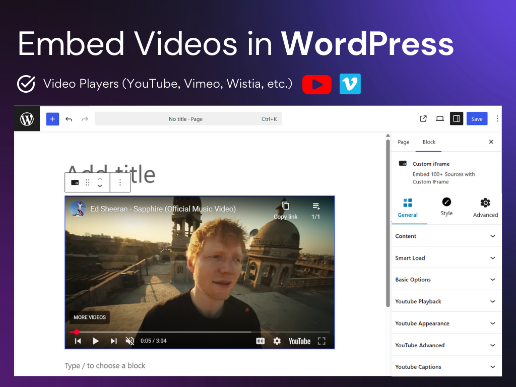 - YouTube & Vimeo Controls – Advanced settings for video embeds