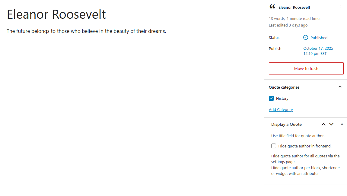 - Display your random quote with block, shortcode or widget