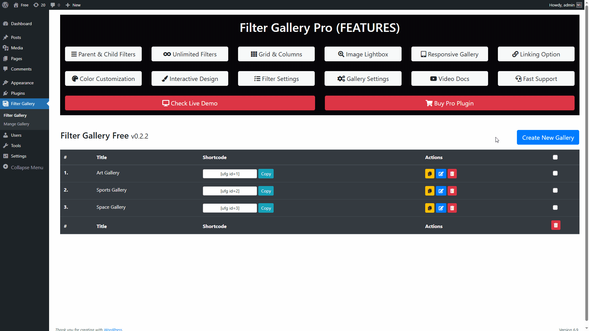 - Navigate to the “Filter Gallery” menu to create your first gallery.