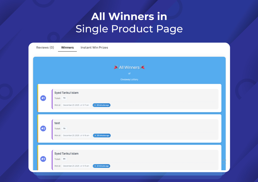 - New: Winner List on Single Product Page (Pro)