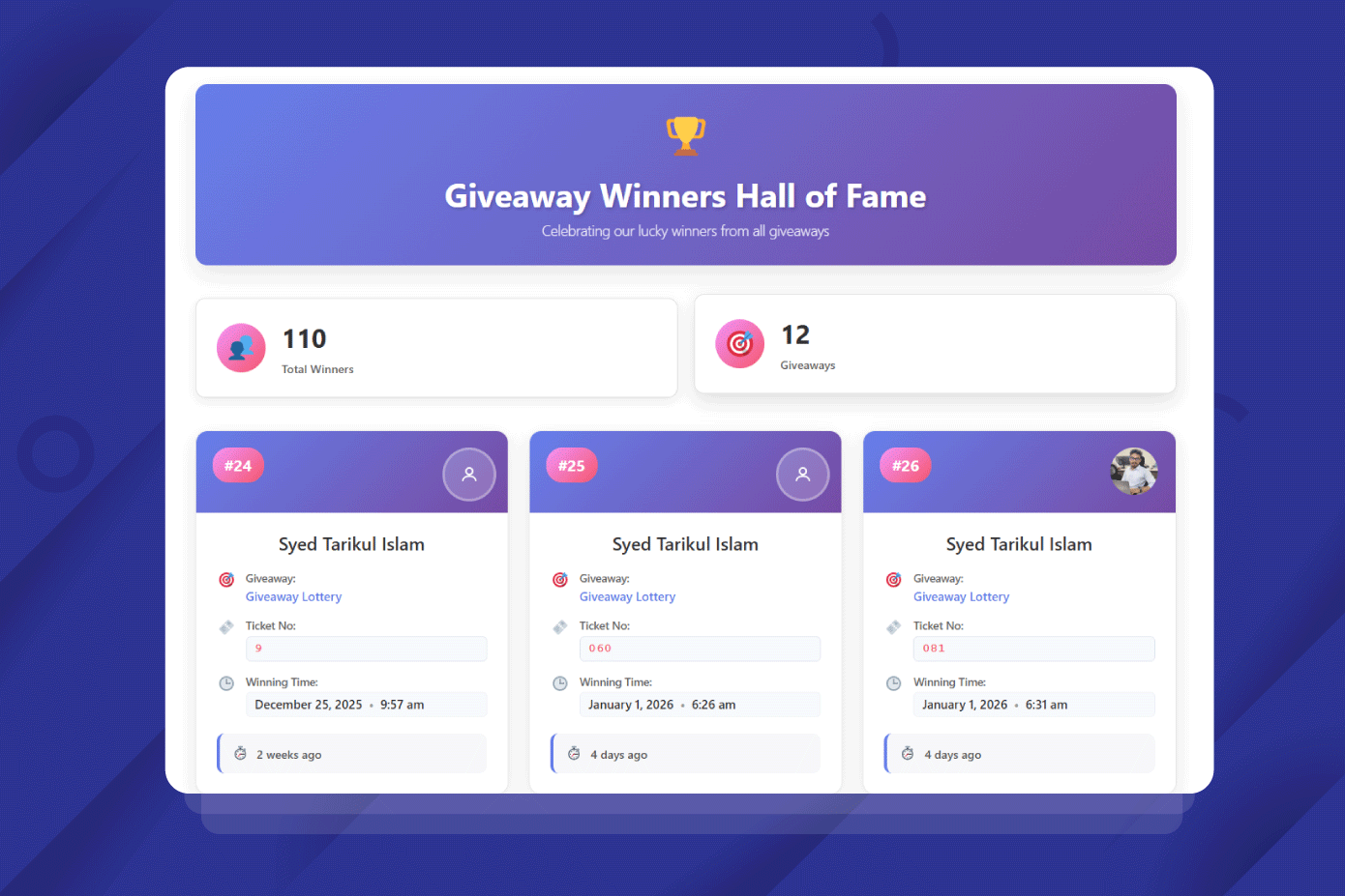 10) Giveaway Reveal System (Random Winner Selection)