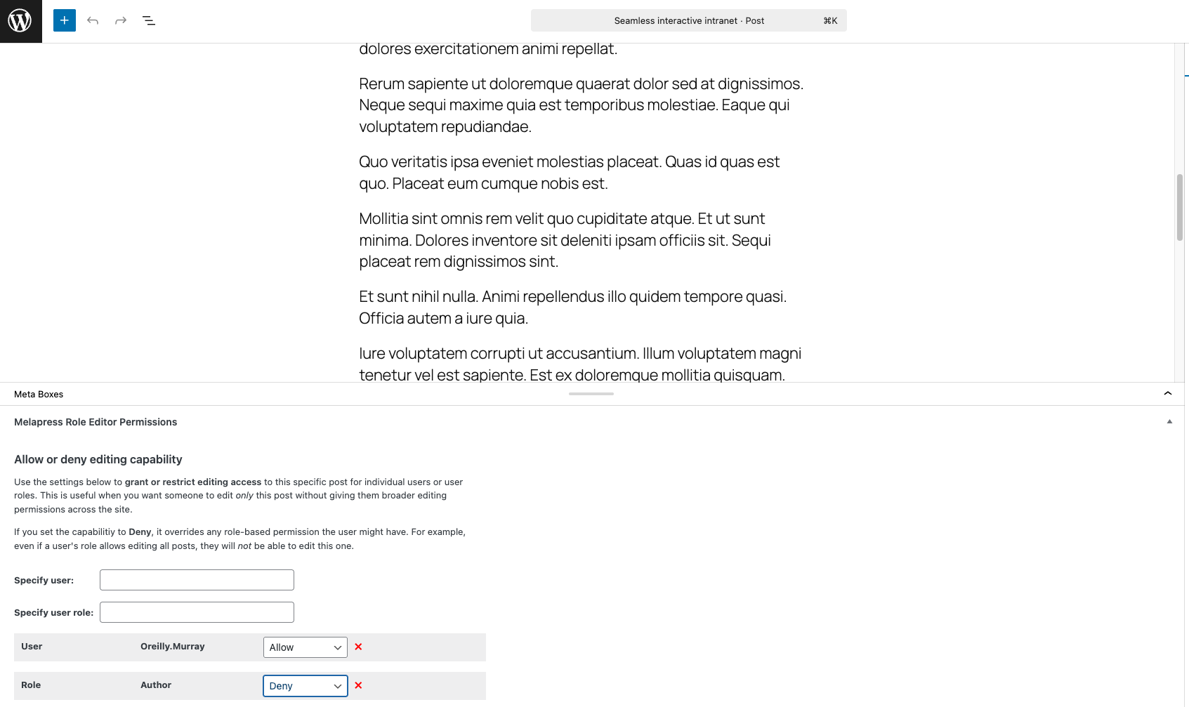 - Granular post-based permissions, enabling you to allow edit access to one post but not another