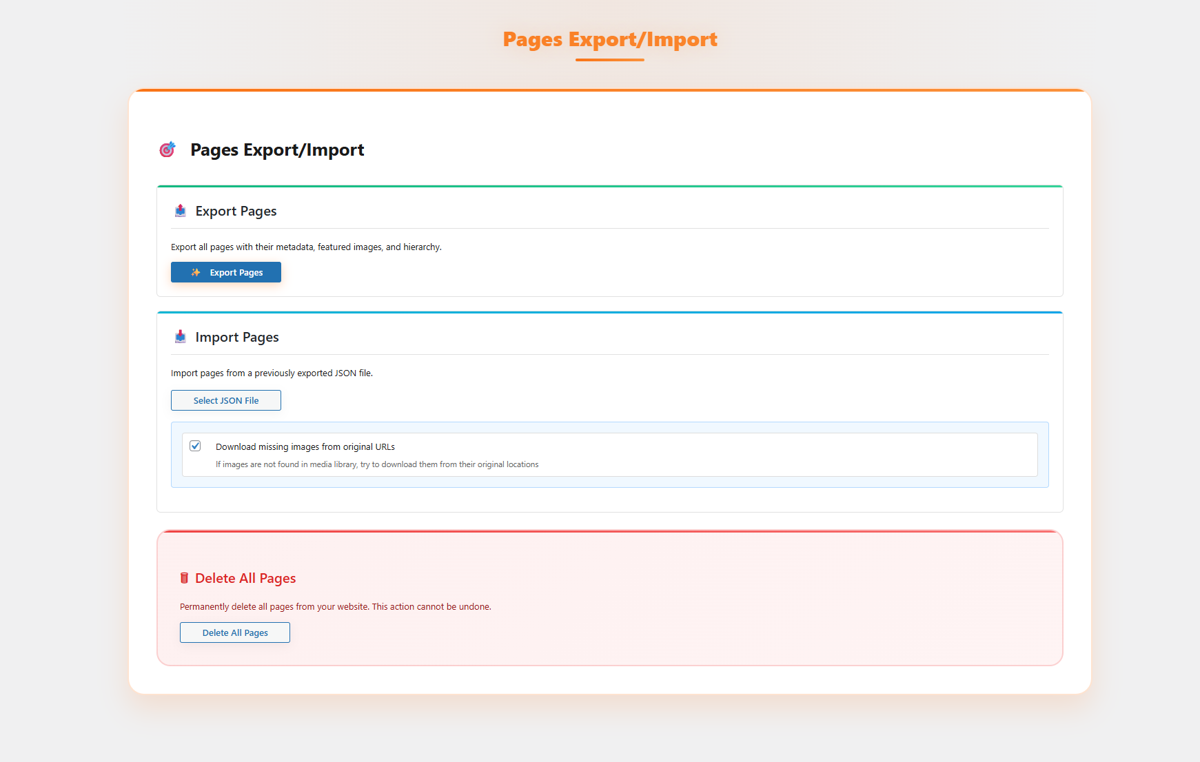 WordPress Pages Export & Import
