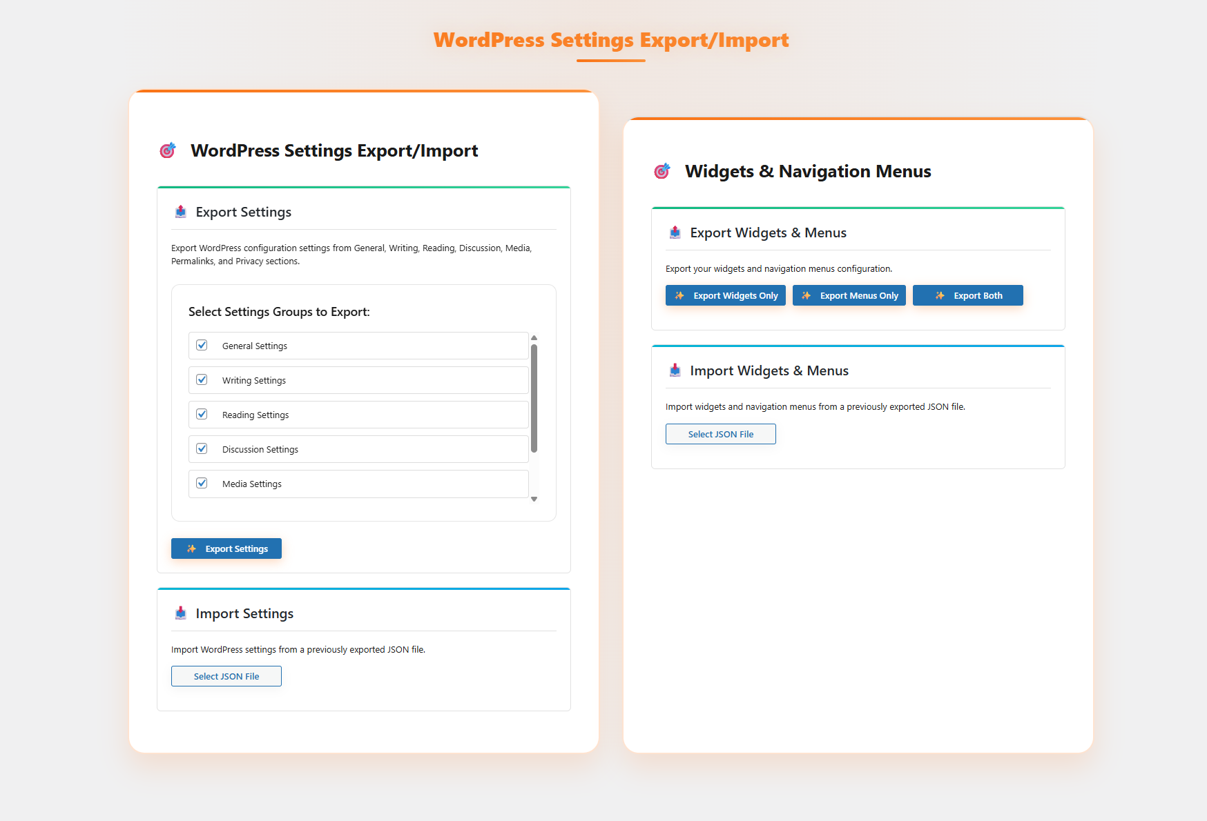WordPress Settings Export & Import