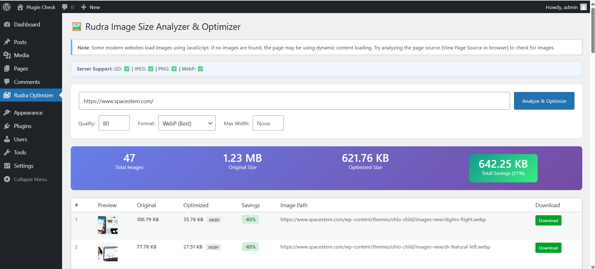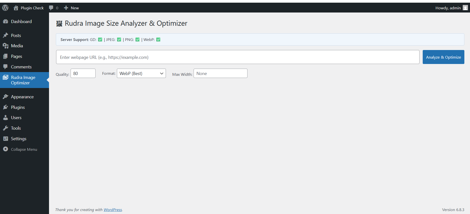- Open Rudra Image Optimizer inside the WordPress Admin