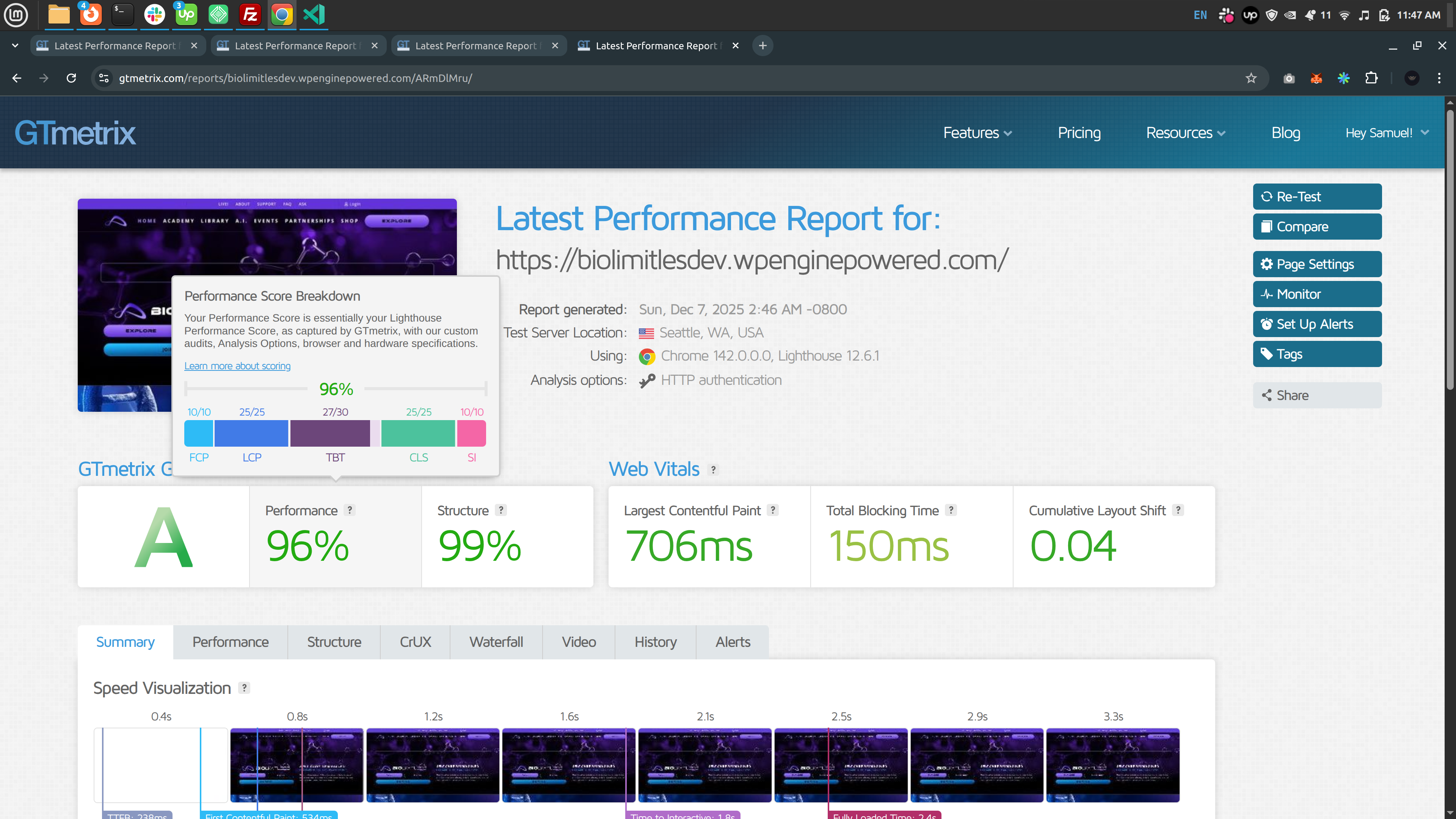 * Performance logs showing recent page loads
