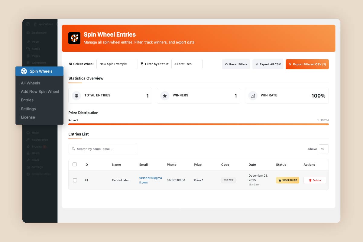 With extensive customization options, advanced display settings, and robust spam protection, Spin Wheel makes it easy to create captivating offers that boost conversions and keep users coming back.