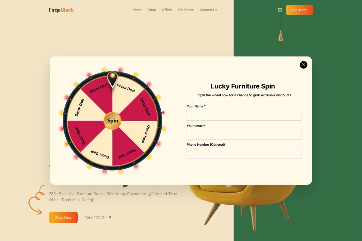 Spin Wheel – Interactive spinning wheel that offers coupons