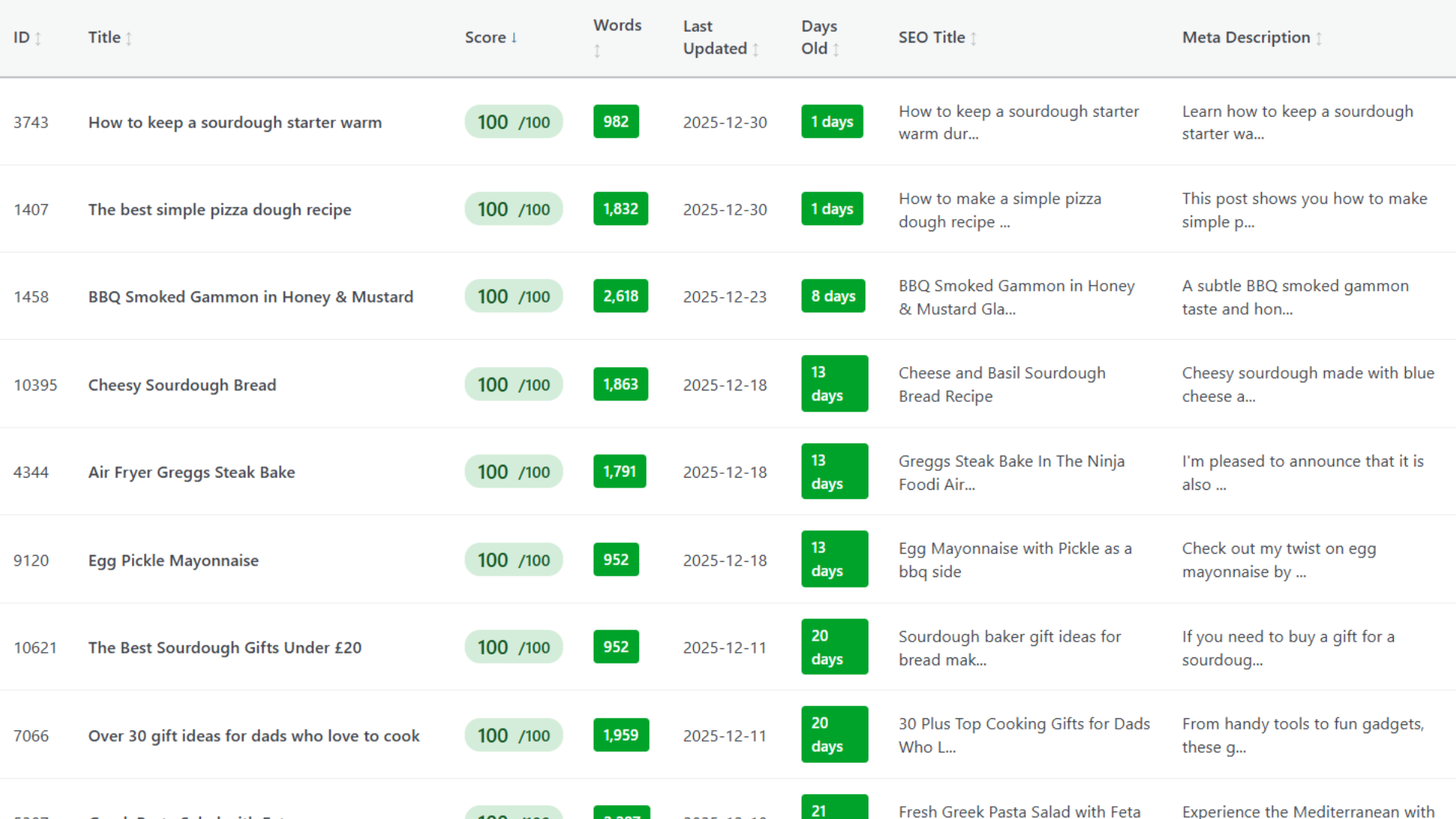 - Content Freshness Tracking – Identify posts that haven’t been updated in months or years