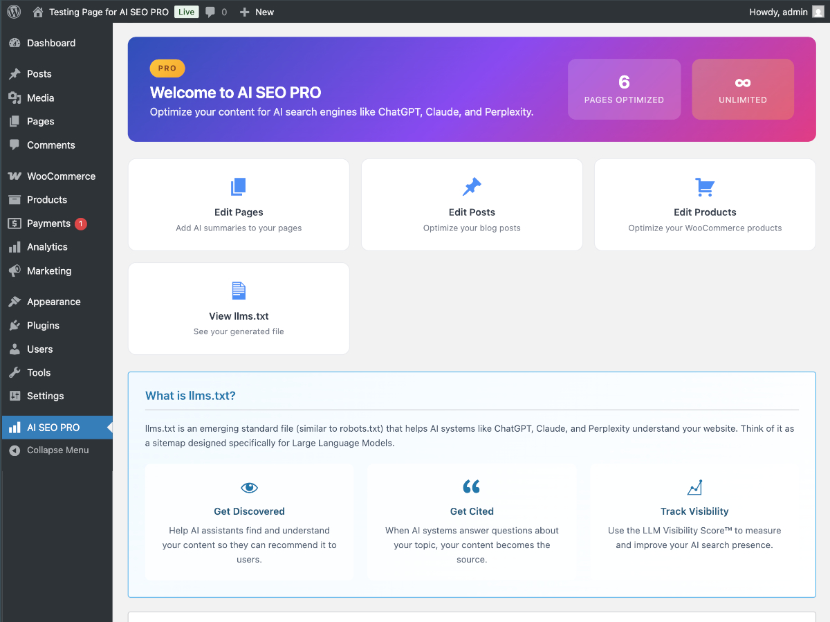 - View your llms.txt file at yoursite.com/llms.txt