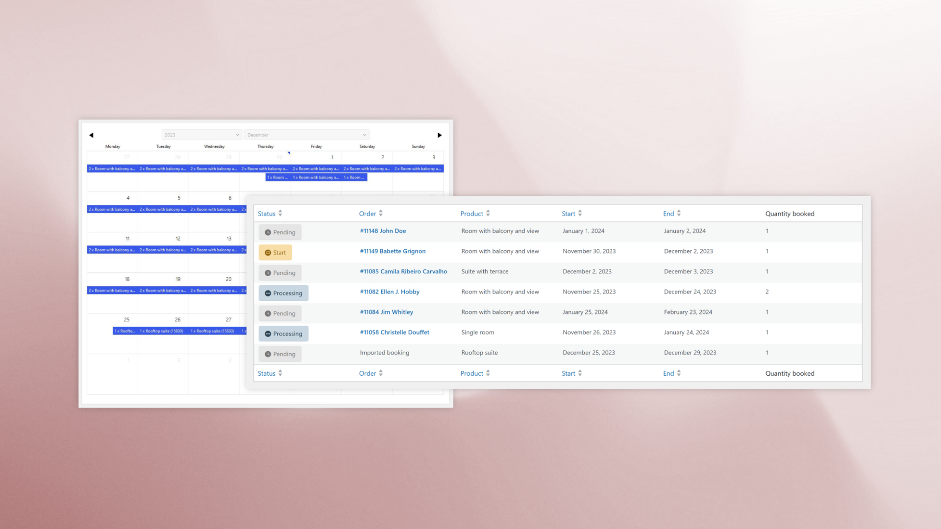 - Manual booking import: Add reservations manually without creating orders, ideal for phone bookings or external systems.