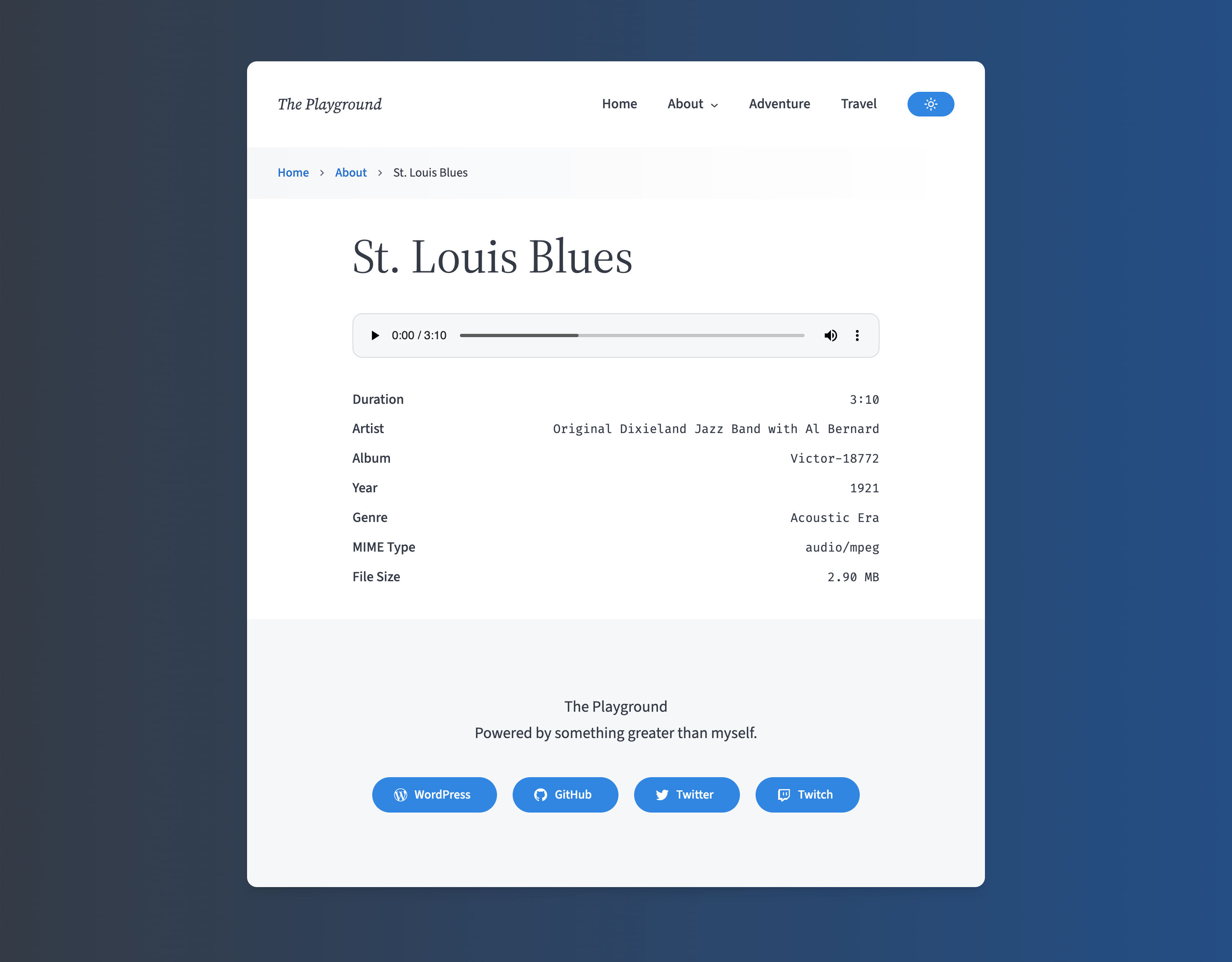 - Display EXIF, ID3, and other file metadata directly in your posts or pages.